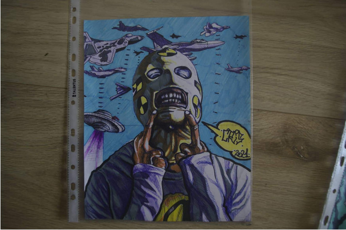 Obraz proveden kombinací fixy a propisky.