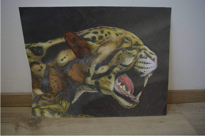 Obraz nakreslen kombinací křídy, tužky a akvarelu.