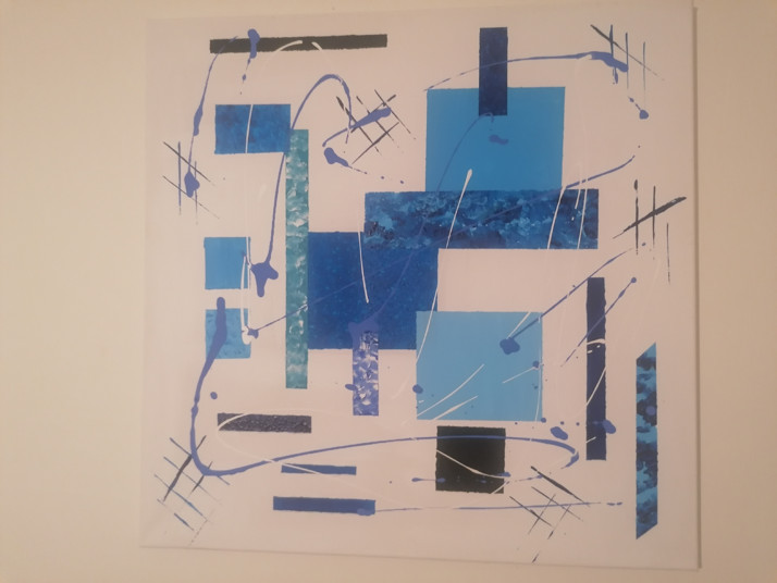 Modré čtverce. Abstrakce. Akryl na plátně. Rozměr 50x50