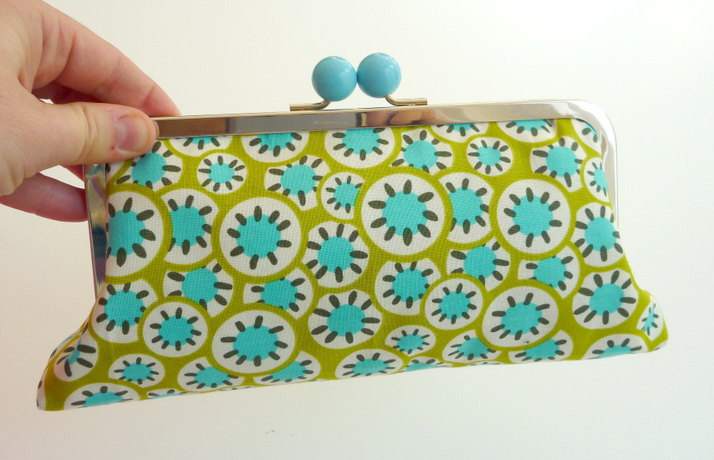 Moje první úspěšná rámečková taštička (předcházelo zkoušení a hledání vhodného postupu). Je ušita z mé úplně nejoblíbenější látky ze všech :-)
