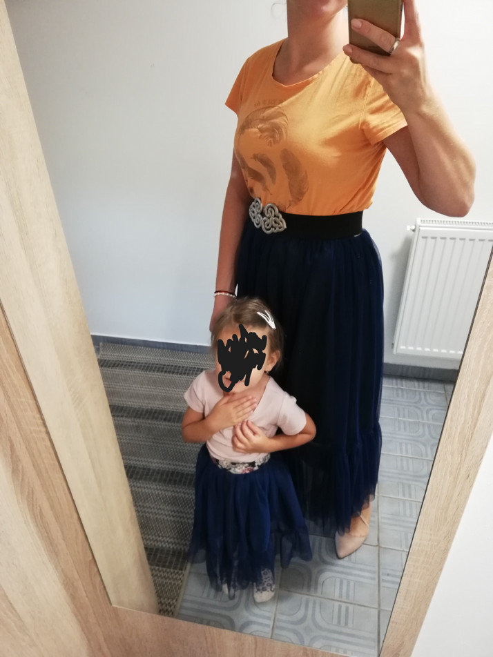 Tylová sukně v pase na gumu, ve spodní části volánek