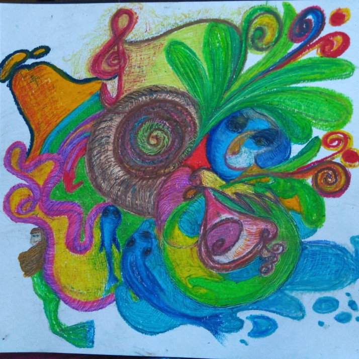 obraz na papíře, olejový pastel, kousek větší než vel. A4, s názvem: "Sen"