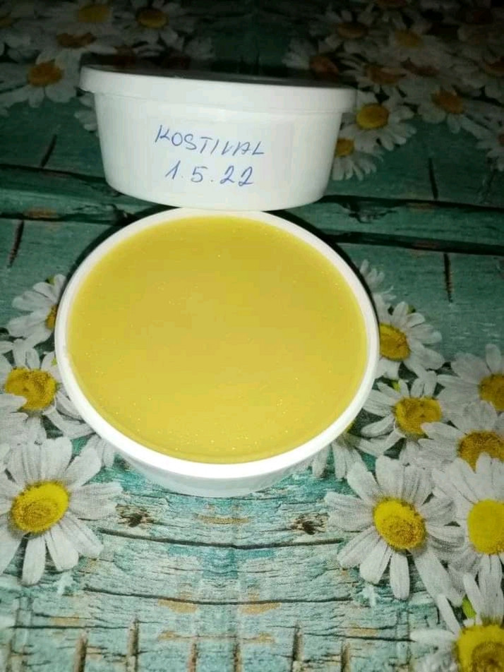 Kostivalová mast na karpální tunel, bolavou páteř a klouby. Ulevuje namoženým svalům. Obsahuje kostival kořen, tymián, vepřové sádlo a včelí vosk.