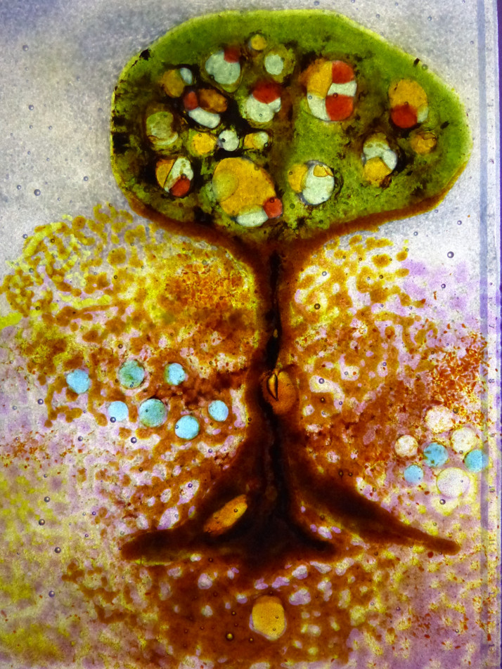 Obrázek ze skla vytvořený technikou fusingu. Rozměry 17,5 x 23,5 cm