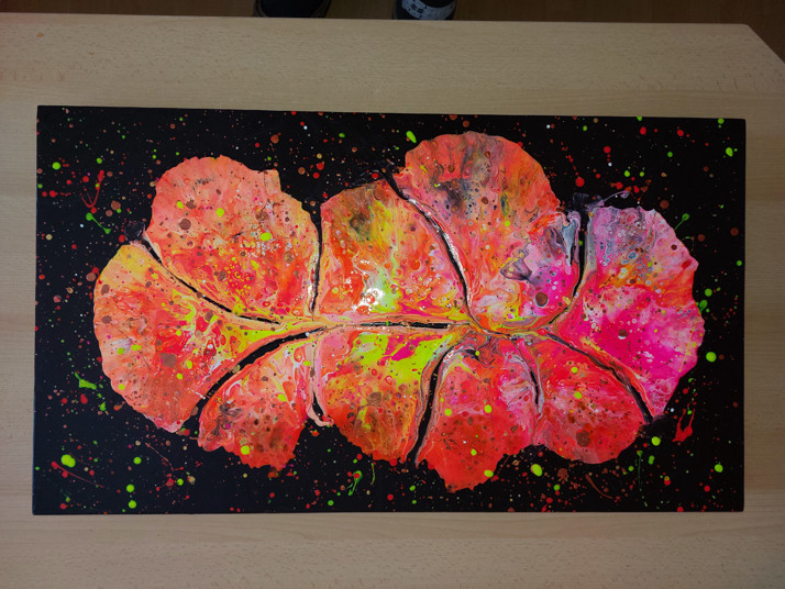 Akryl.pouring.80x45cm.neónové barvy.cena 1800kč