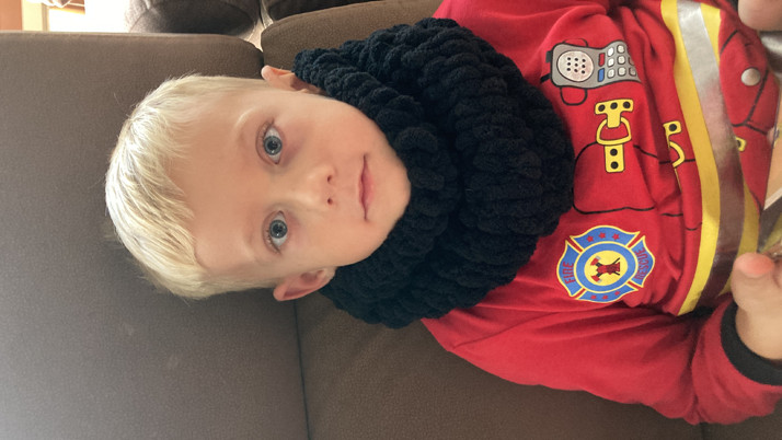 Nákrčník černé barvy vyrobený z příze Alize Puffy