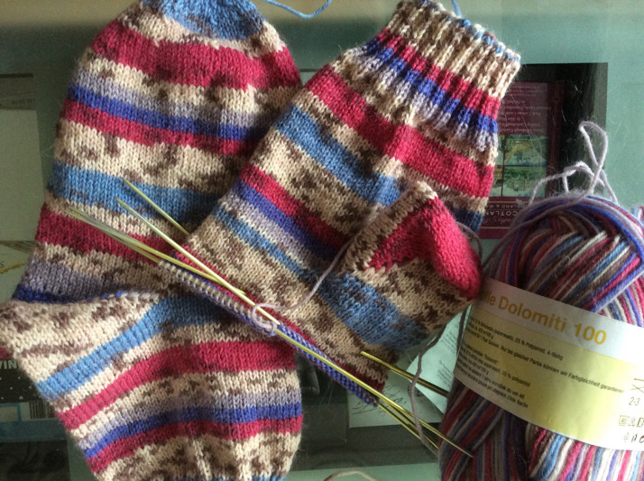 Pletené ponožky z tenké příze na 5 jehlicích pro silnější nožky.