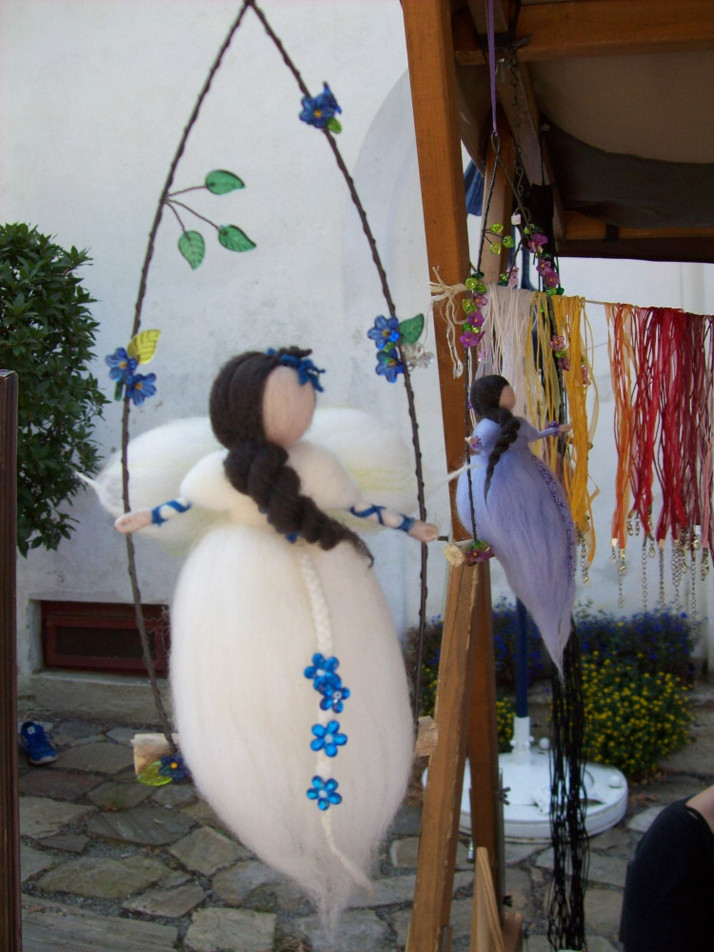 Plstěná víla na drátkované houpačce