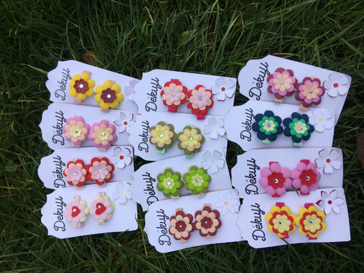 sponečka měří 3cm, je pokrytá barevnou stuhou ( barva stuhy se dá měnit dle vašeho přání) a nakonec jako třešnička na dortu se na sponečce nachází barevné kvítečko (kvítečka se barevně dají udělat dle vašeho přeni)