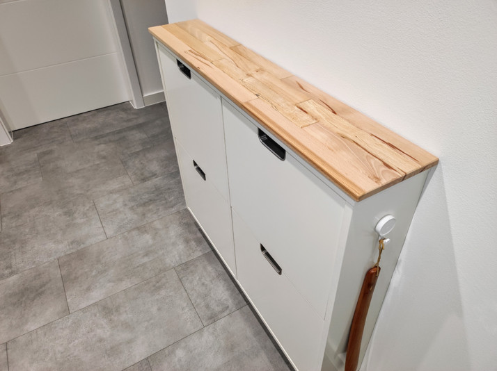 Botník IKEA ställ s naší vrchní deskou z bukových palet, ošetřeno tvrdovoskem.