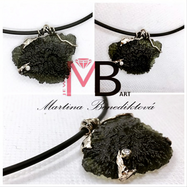 Art náhrdelník na zakázku ve 14Kt zlatě s vltavínem a briliantem