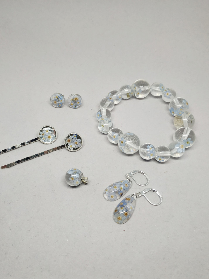 Šperky z pryskyřice nesoucí pomněnkové kvítky