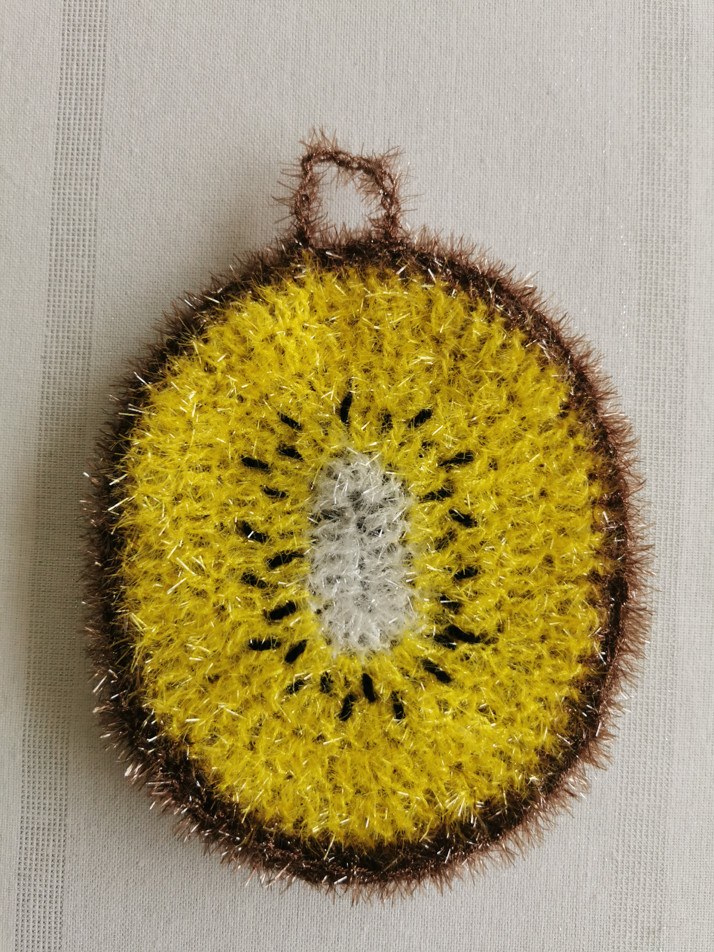 Vlastnoručně háčkovaná žínka na tělo s efektem masáže a peelingu z 100% polyesteru s poutkem na zavěšení. Dobře odstraňuje nečistoty, čistí pokožku, exfoliuje zhrublou vrstvu epidermis a vytváří masážní efekt.