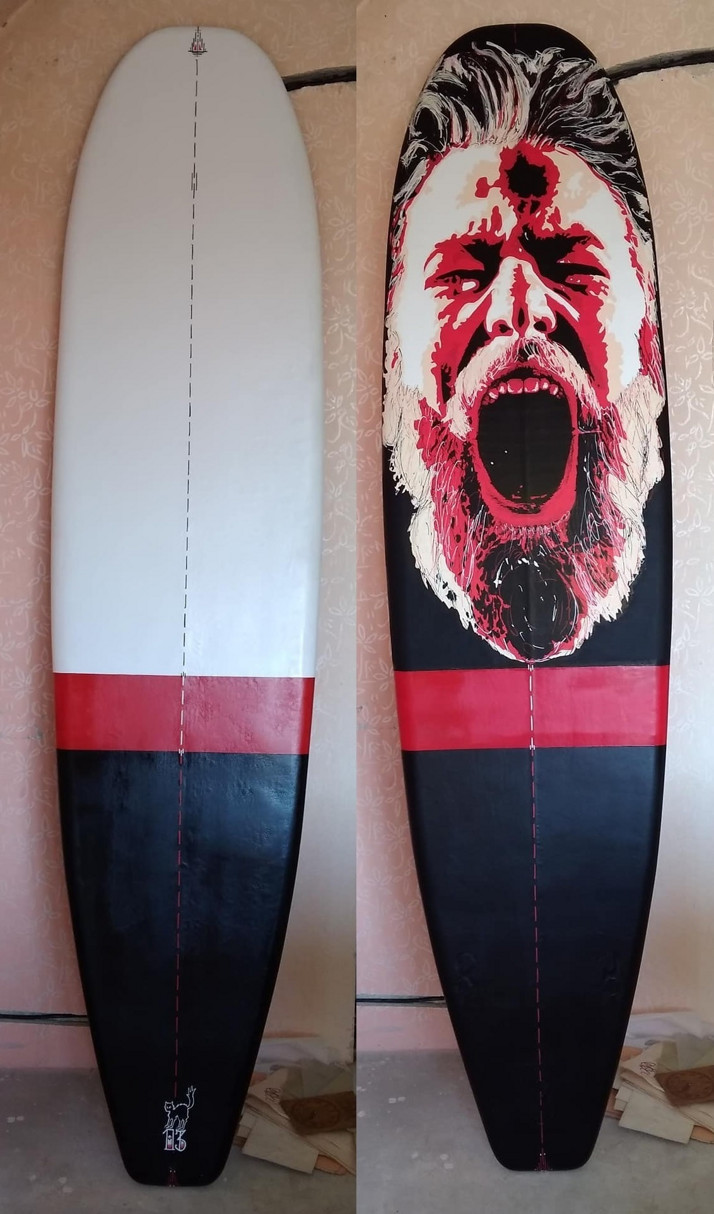 Surfové prkno s motive Řvoucího Poseidona.