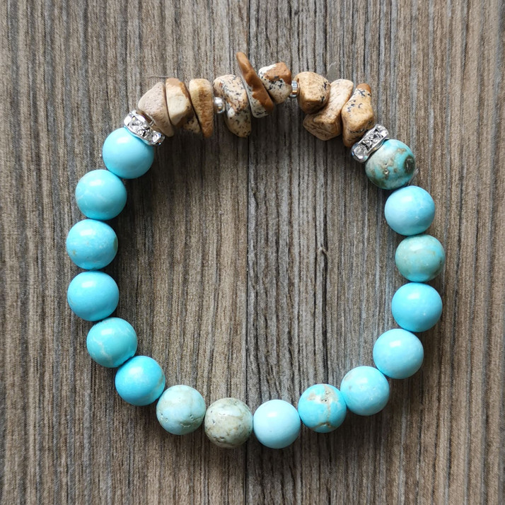 Náramek z tyrkenitu a zlomků obrázkového jaspisu