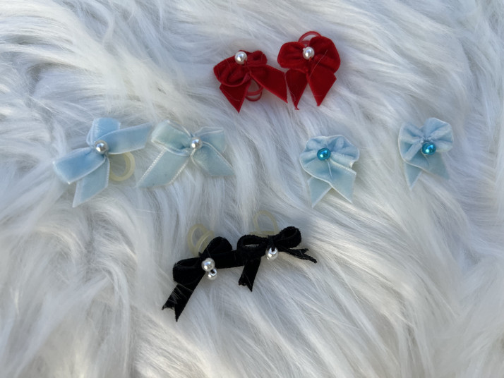 Sametové mašličky pro dva culíčky - zdobené perličkami.