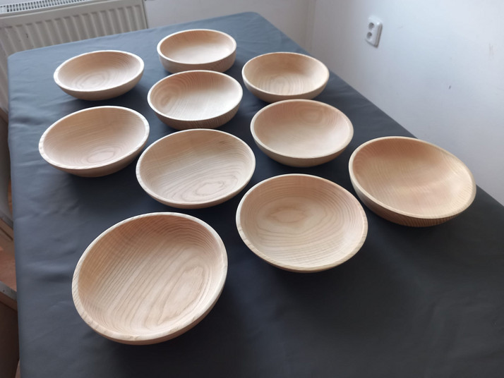 Jedna z mých zakázek na výrobu jasanových misek na guláš. Misky obstáli zátěžovým testem vodou, kde se nezkroutili, nepopraskali a bez povrchové úpravy jsem je dodal zákazníkovi :) objem talíře je 0,5l a je vhodná pro jakékoliv jídlo ať tekuté nebo husté...