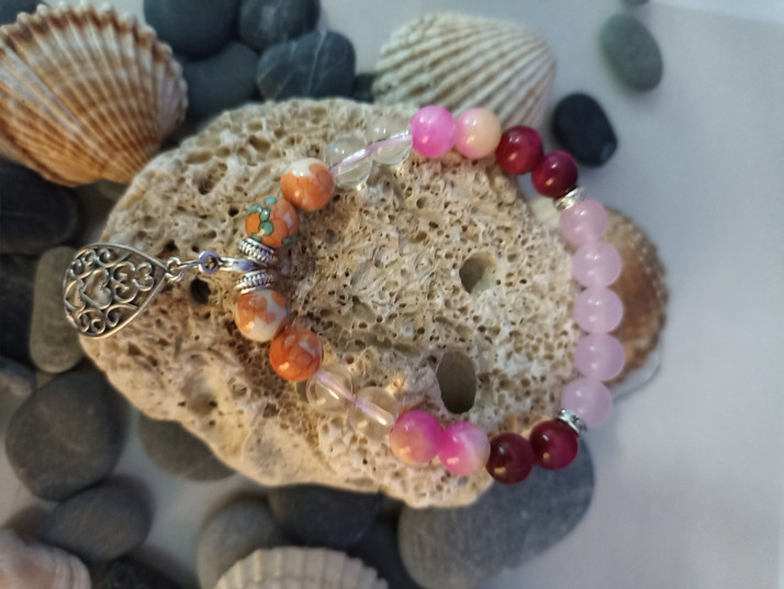 Dámský náramek s růženínem a minerály