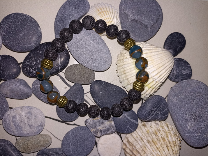 Lávový kámen a modrý křemen je kámen míru klidu a harmonie.