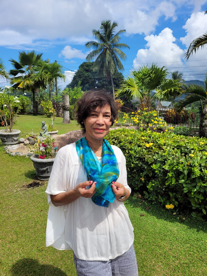 V roce 2023 jedna ze zákaznic darovala šátek této kreolské ženě. Děkuji paní S. za zaslání fotografií.