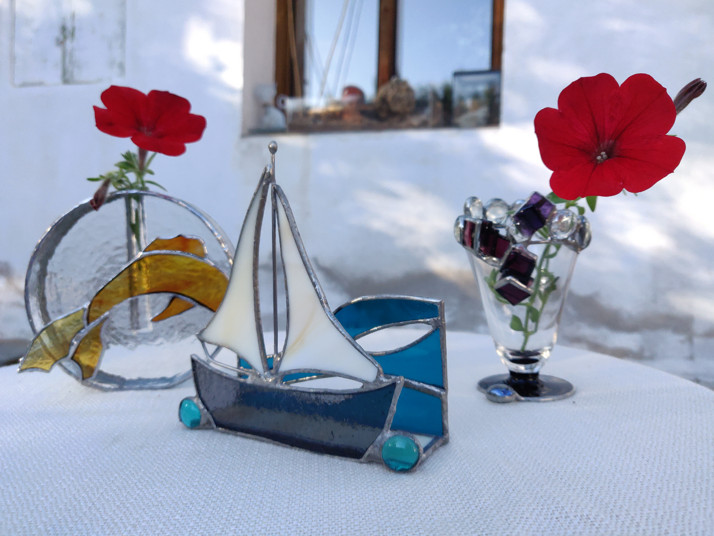 Stolní dekorace - sklo technikou Tiffany, ruční práce.