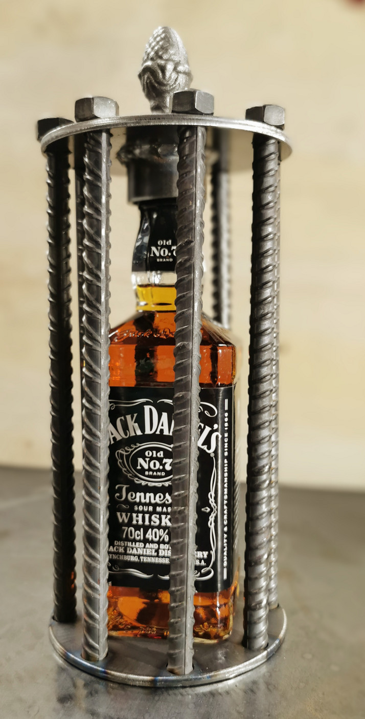 Ručně vyrobená ocelová klec, jako schránka dobrého pití pro přítele. Uvnitř klece může být jakákoli láhev, dle přání.