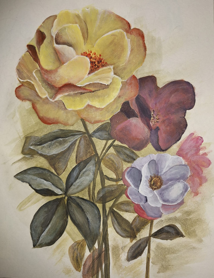 Růže na čtvrtce. Cena 750kč. Malba Akryl. velikost 33x33,5 . Bez rámu.