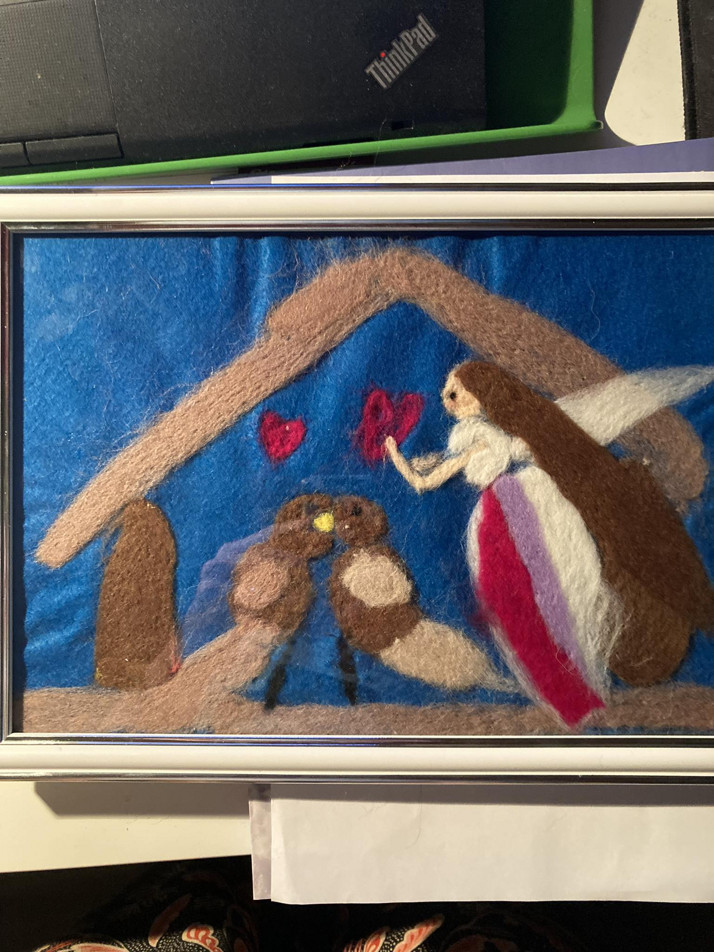 Materiál 100% merino vlna, práce plstěním - dcera 9.let.