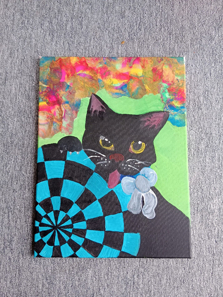 Tento obraz je malovaný akrylovými barvami, mám svou zvláštní techniku, baví mě protože miluji kočky