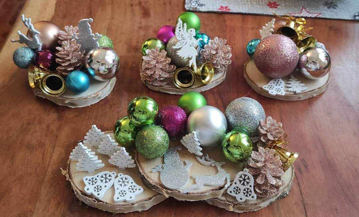 Podstava - dřevěná kolečka. Vánoční prvky.
