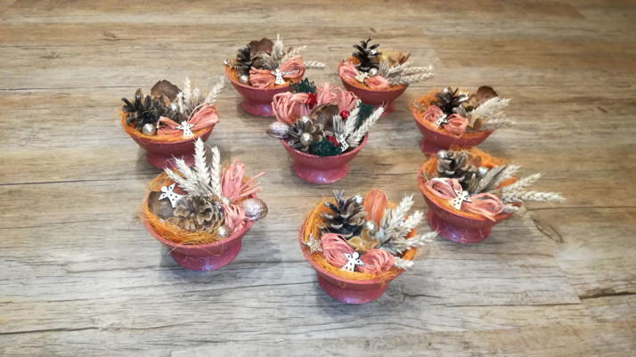 Vánoční košíčky z přírodního a částečně recyklovaného materiálu.