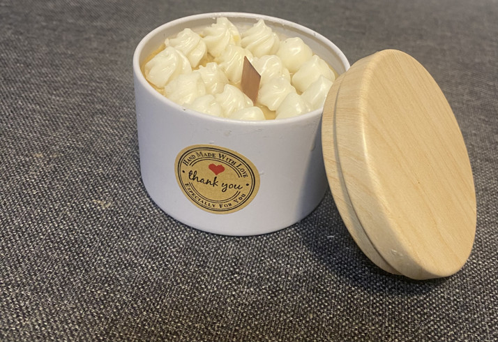 Sojová svíčka v plechové dóze. Vosk je bez parafínu.