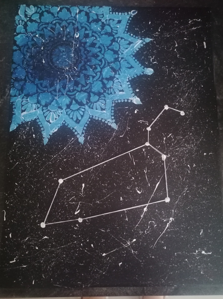 Nabízím malované obrazy se souhvězdím daného znamení.Znamení je vyšité. Barvy a velikost záleží na domluvě
