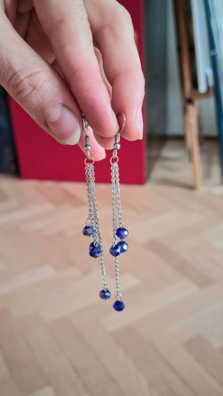 Ručne vyrobené vysacie náušnice Modroočko, veľmi ženské, ku všetkému hodiace sa a môžete sa s nimi kúpať, či sprchovať, na deň i večer, skrátka na rôznu príležitosť. Kúp si ich a stanú sa z nich Tvoje stálice a verné kámošky.
