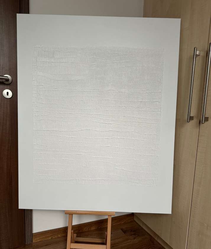 Originální obraz bílý s výraznou strukturou, rozměr 90x110cm
