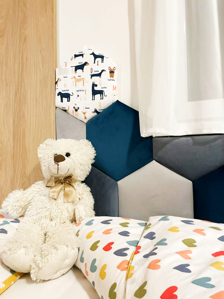 Každý modul je 3cm tlustý, má výbornou tepelnou a akustickou izolační schopnost. Ochrání stěnu před odřením. Slouží jako opěrka zad a hlavy.