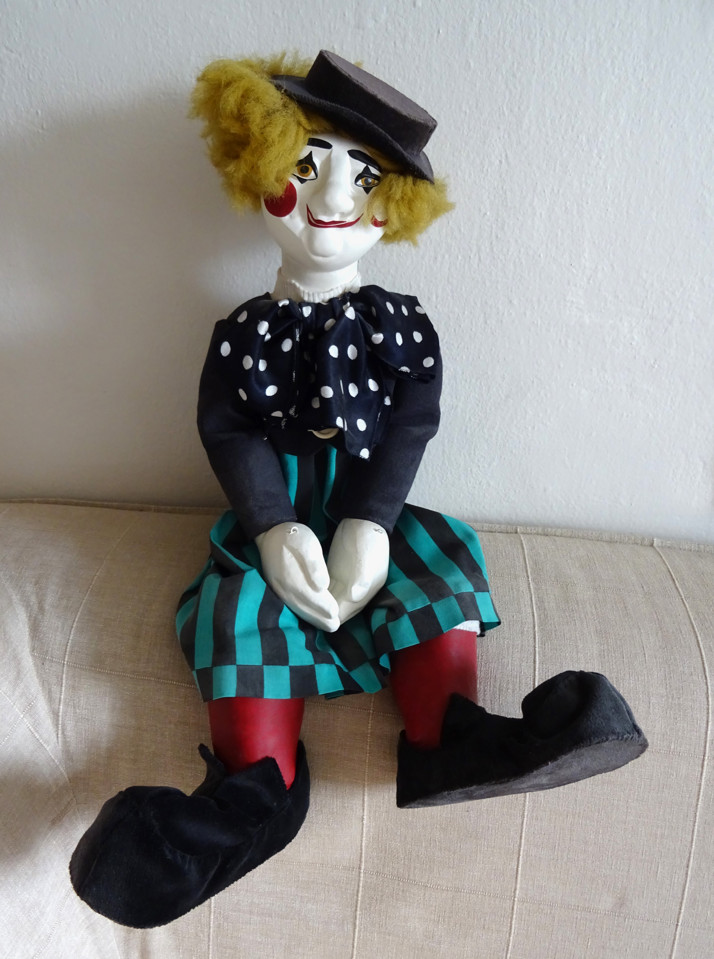 Figurka vyrobená z tvrzené sádry, dřeva, drátů a textilu. Malovaná akrylovými a patinovaná mistrovskými olejovými barvami a přelakovaná.