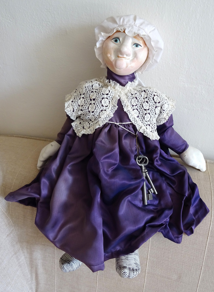 Figurka vyrobená z tvrzené sádry, dřeva, drátů a textilu. Malovaná akrylovými a patinovaná mistrovskými olejovými barvami a přelakovaná.