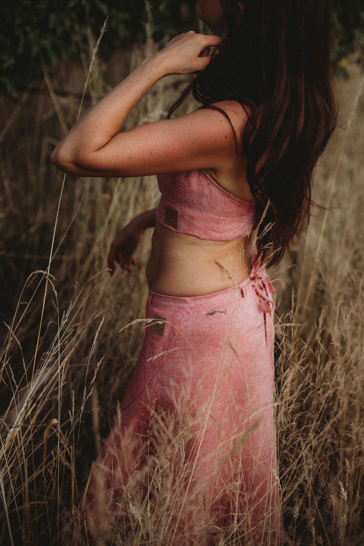 Lněná zavinovací sukně v barvě červené je lehká jako vánek.