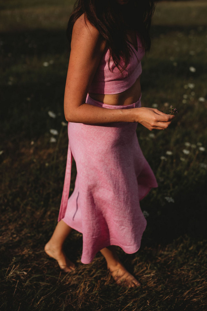 Lněná zavinovací sukně v barvě fuchsiové je lehká jako vánek.