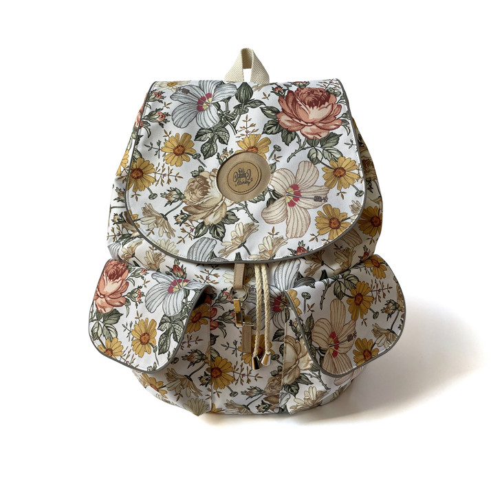 Dámský větší batoh s béžovými květy.