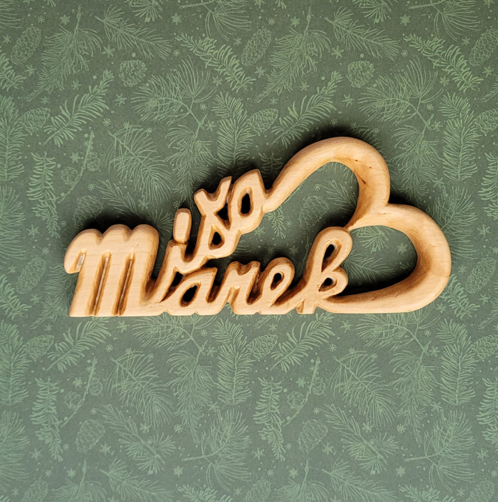 Jména vyřezaná ze dřeva do tvaru srdce
