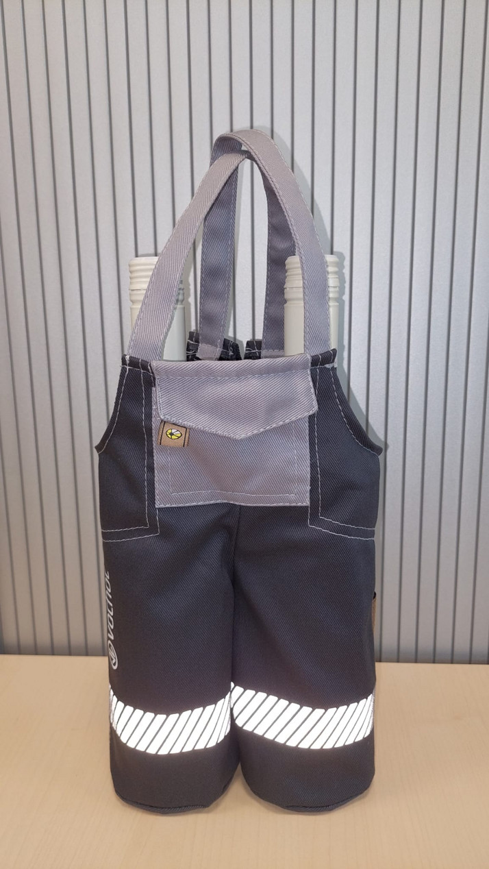 Neobvyklý a oblíbený obal na lihoviny. Vejdou se 2 lahve vína, rumu či jiné lihoviny. Případně lahev a do druhé nohavice sladkosti, brambůrky, dárek atd. Obal si posléze lidé vystaví. Kšandy slouží jako ucha za která je možné dárek nést a předat.