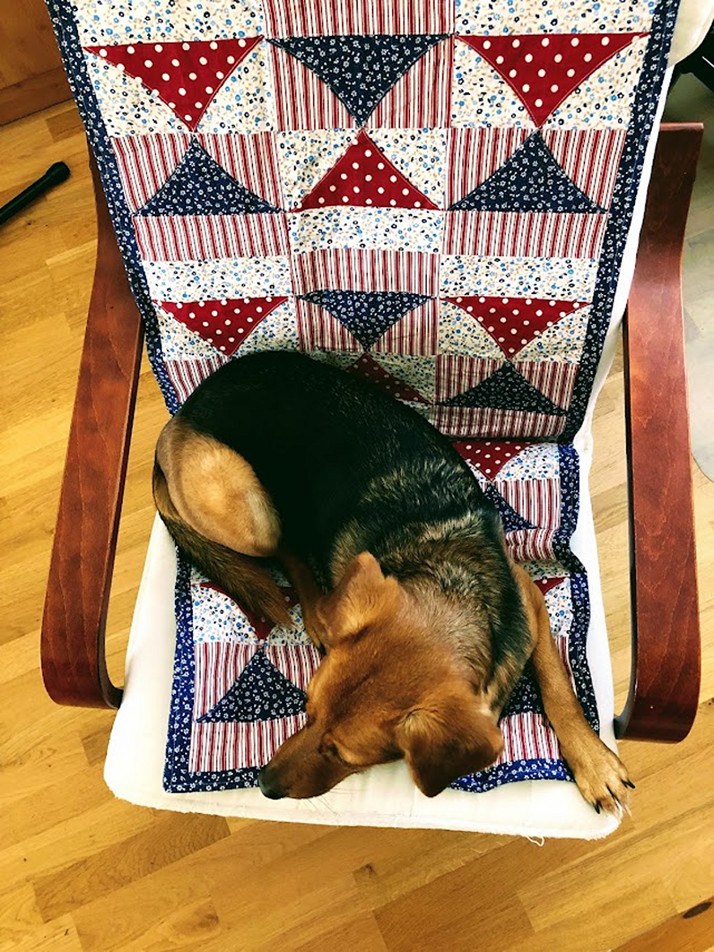 Patchworkový přehoz na křeslo. Pokud s vámi bydlí váš domácí mazlíček, jistě oceníte originální přehoz na křeslo, který usnadní váš věčný maraton vysávání chlupů a odstraňování otisků tlapek...:-)))