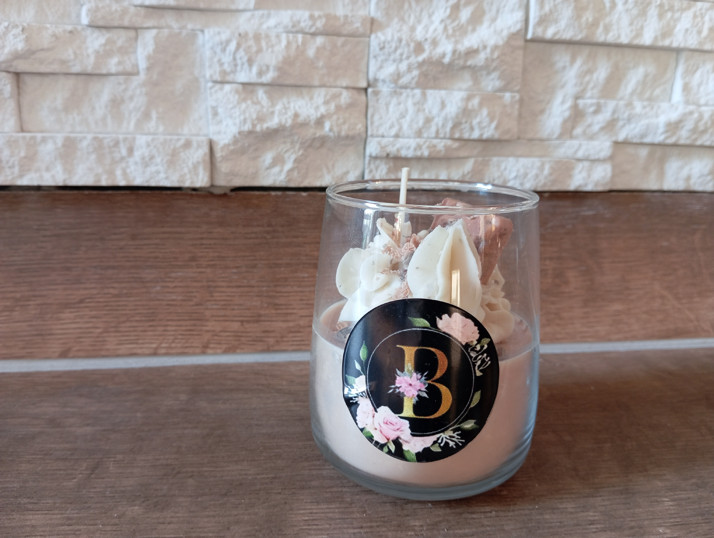 Sójová svíčka s vůní čokolády. Velká,objem sklenice 340 ml. 179,-