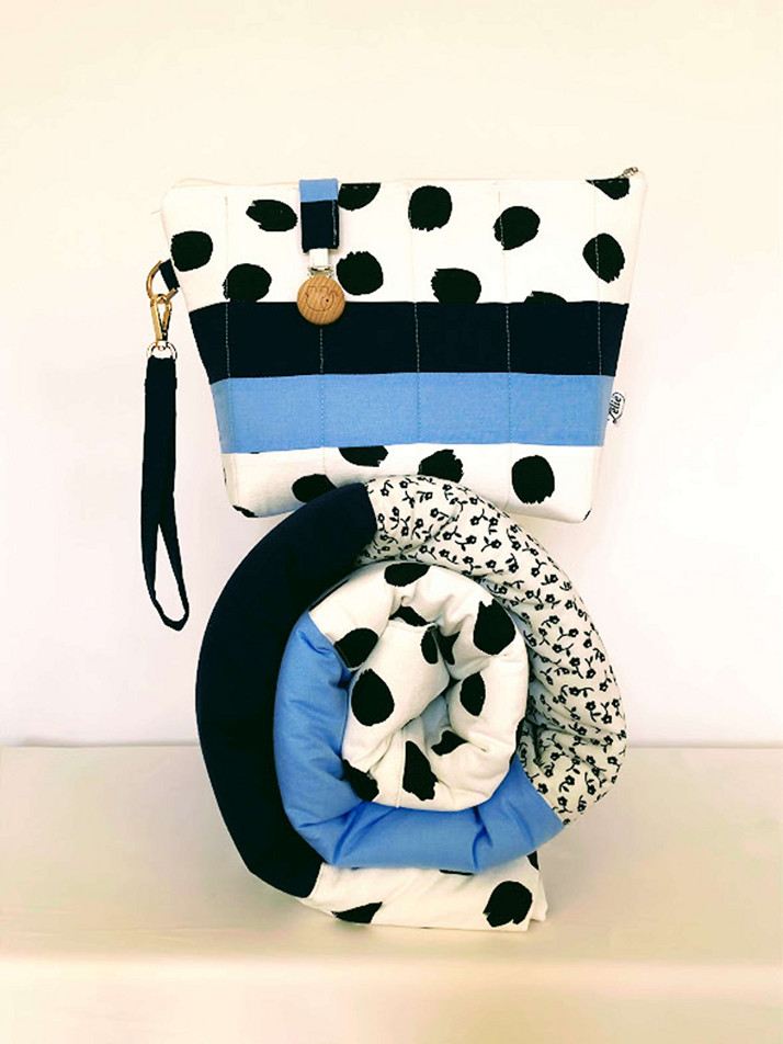 Válecí deka, taštička na věci pro miminko a klip na dudlík...tahle modrobíločerná souprava byla ušitá na zakázku pro šťastnou maminku malého chlapečka.