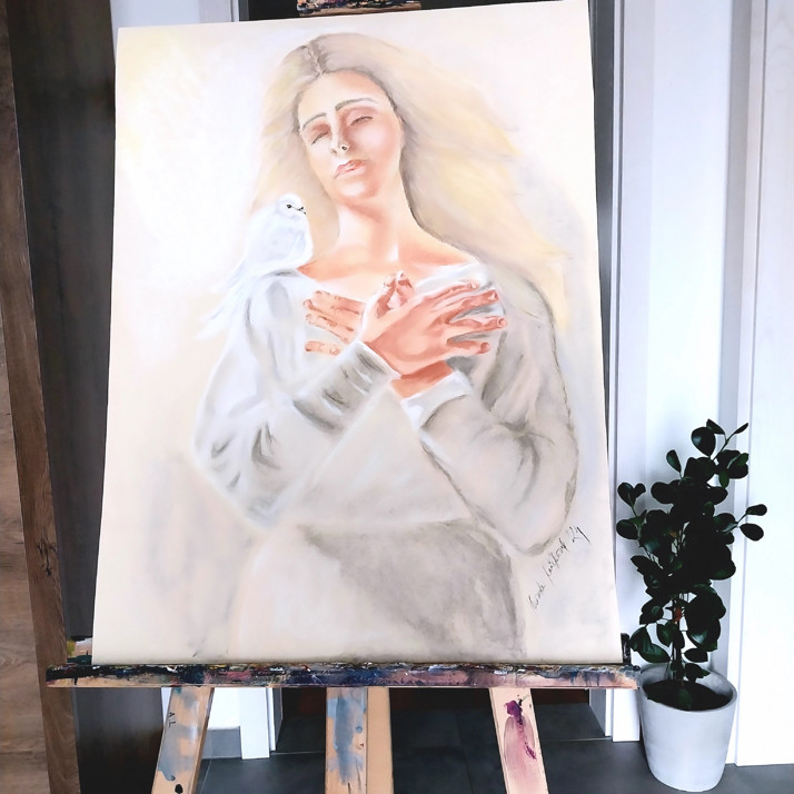 Paní hledající vnitřní mír - autorská malba pastelem