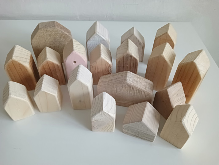 Miniaturní domečky z různých druhů dřeva: smrk, dub, buk, modřín, jasan. Rozměry možné upravit dle přání. Vhodné na interiérovou dekoraci a rovněž k vlastnoručnímu dozdobení. Ohoblované dohladka.
