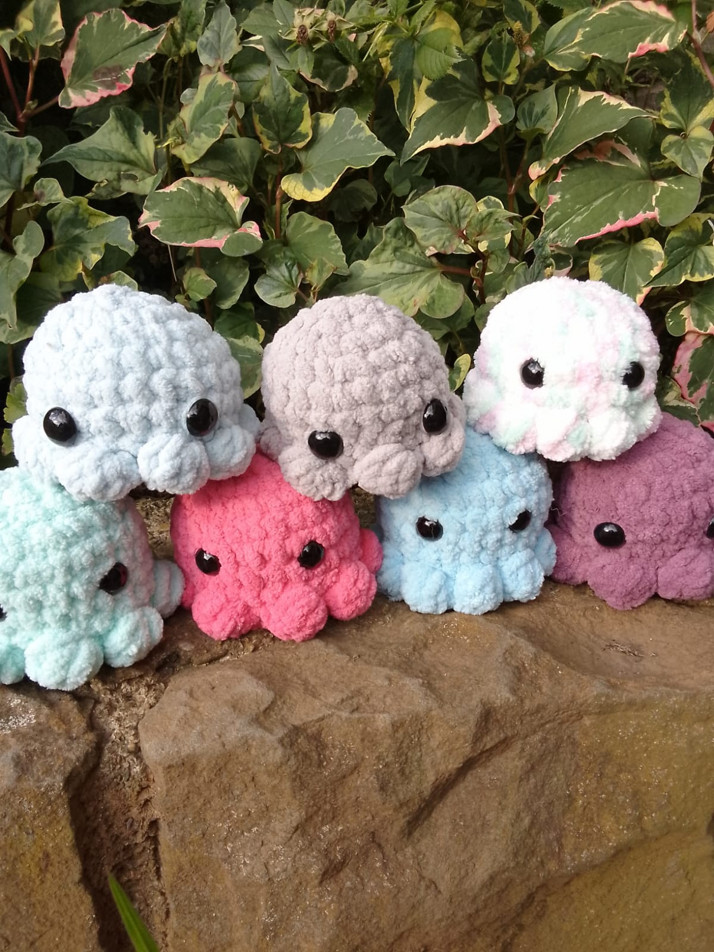 Háčkované chobotničky různých barev z příjemného měkkého materiálu. Rozměry š: 10 cm, v: 8 cm, d: 10 cm. Zaslání možné přes Zásilkovnu ( + 72 Kč) nebo Českou poštu ( + 129 Kč), případně osobní předání ve Frýdku-Místku, Frýdlantu n.O.