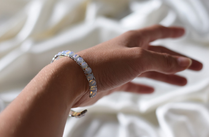 Náramek s polodrahokamem opalitem jsem tvořila jako dárek k narozeninám pro moji dobrou kamarádku
